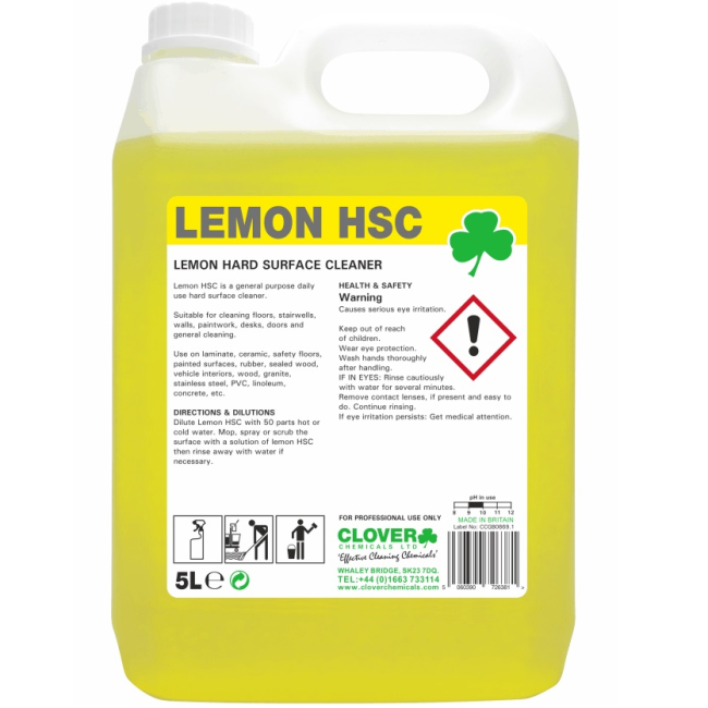 Clover 353 Lemon HSC Hard Surface Cleaner is a general purpose daily use hard surface cleaner. Suitable for cleaning floors, stairwells, walls, paintwork, desks, doors and general cleaning. Use on laminate, ceramic, safety floors, painted surfaces, rubb